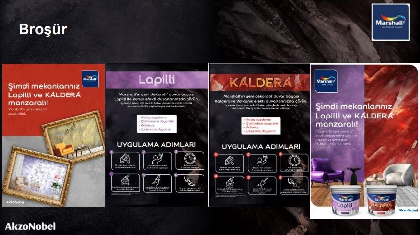 Su bazlı, sedefli ve metalik tonlardan oluşan sınırsız efek yapılabilen su bazlı bir dekoratif boyadır. Son kat renklendimesi için Kaldera Efekt